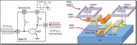 O circuito consiste de um único transístor de grafeno com um par de indutores integrados em uma pastilha de carbeto de silício (SiC).